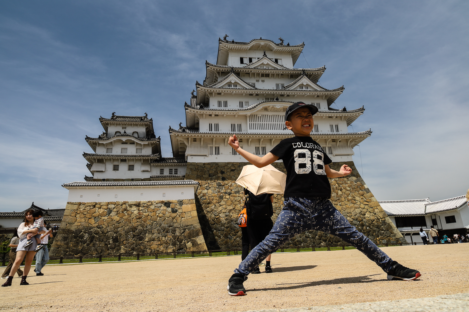 Jeden z mála autentických zachovaných hradů – Himeji.Himeji i s hbitým chlapcem.Na ostrově Myiajima – Torii brána za odlivu.Pohled na školačky s Hiroshimou na pozadí.Most před mystickým Okunoin chrámem.Hřbitovní cesta podél více než 200 000 lehce postarších náhrobků.Několik z více než 10 000 Torii bran vedoucích k Fushimi Inari svatini.